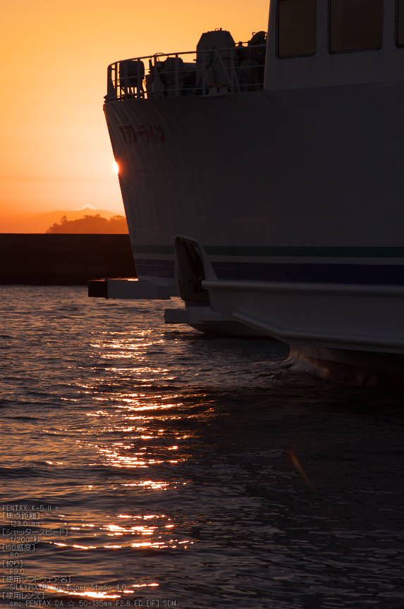 その渥美半島方面に雲が掛かっていたので、この位置5分遅れの日の出です。