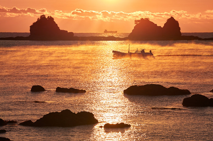 水平線からの初日の出は残念でしたが、明け方に見えなかった海霧が急に湧き始めるという嬉しい誤算。