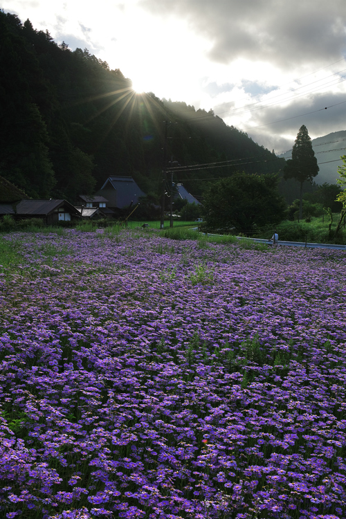 この時季になると紫色の花絨毯"北山友禅菊"が敷かれる、それはそれはとても美しい里山景が広がります。