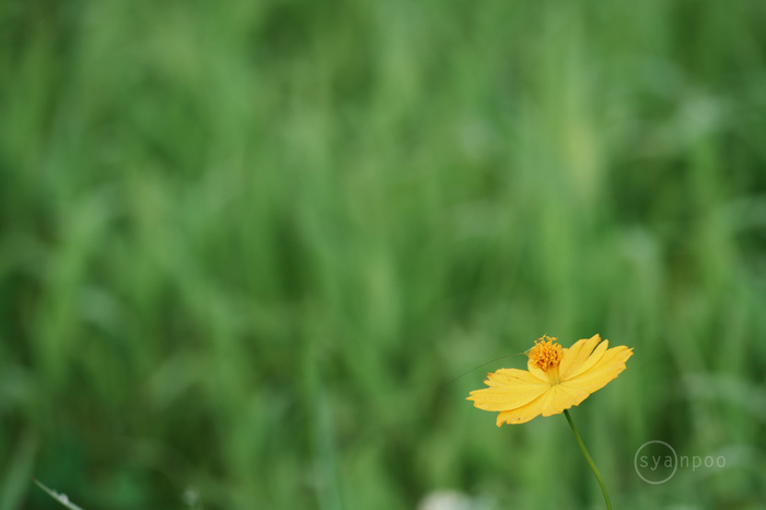 どこからか運ばれてきたキバナコスモスの種