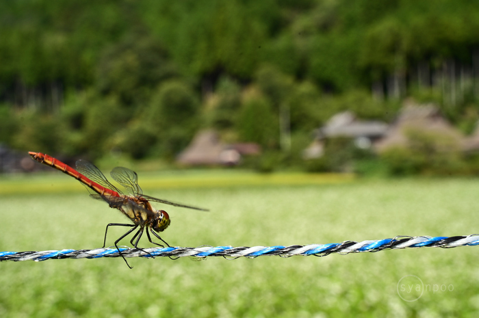 太陽のほうへお尻を持ち上げるトンボ